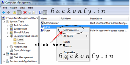 5. Now you will see all the login accounts of your computer. Right click on any the account whose password you want to change and then click on Set Password.